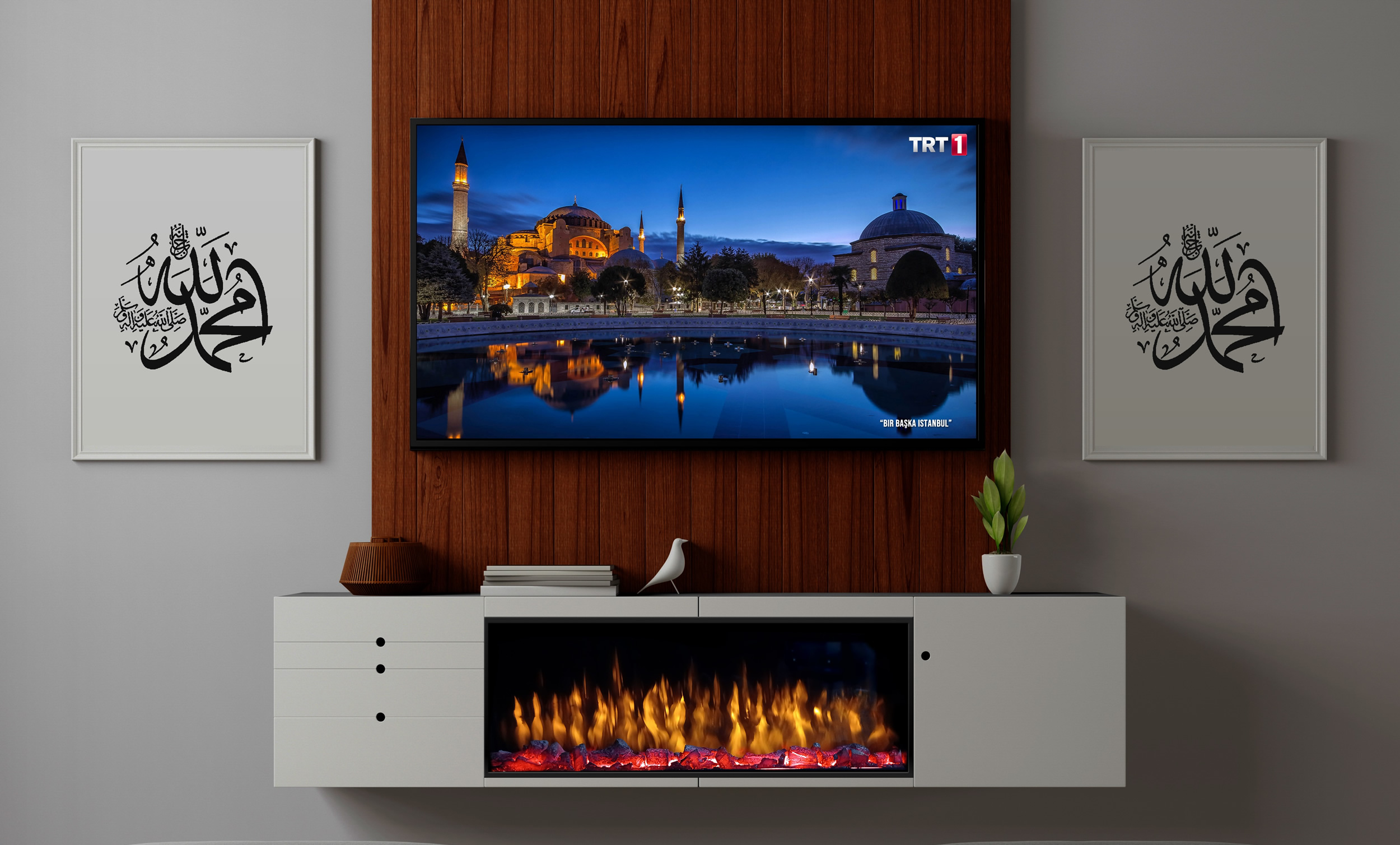 • Dekoratif 3 Yönlü Görsel Şömine Tasarımı